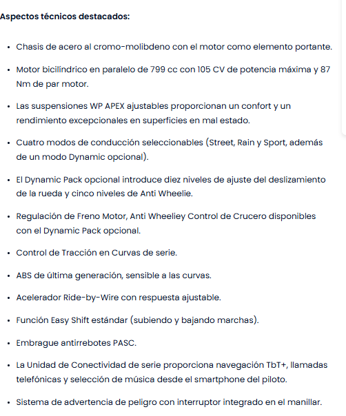 El pack Dynamic opcional eleva la experiencia de pilotaje y libera todo el potencial de la Svartpilen 801. El modo de pilotaje Dynamic puede configurarse según las preferencias personales, pudiendo seleccionar 3 ajustes diferentes de respuesta